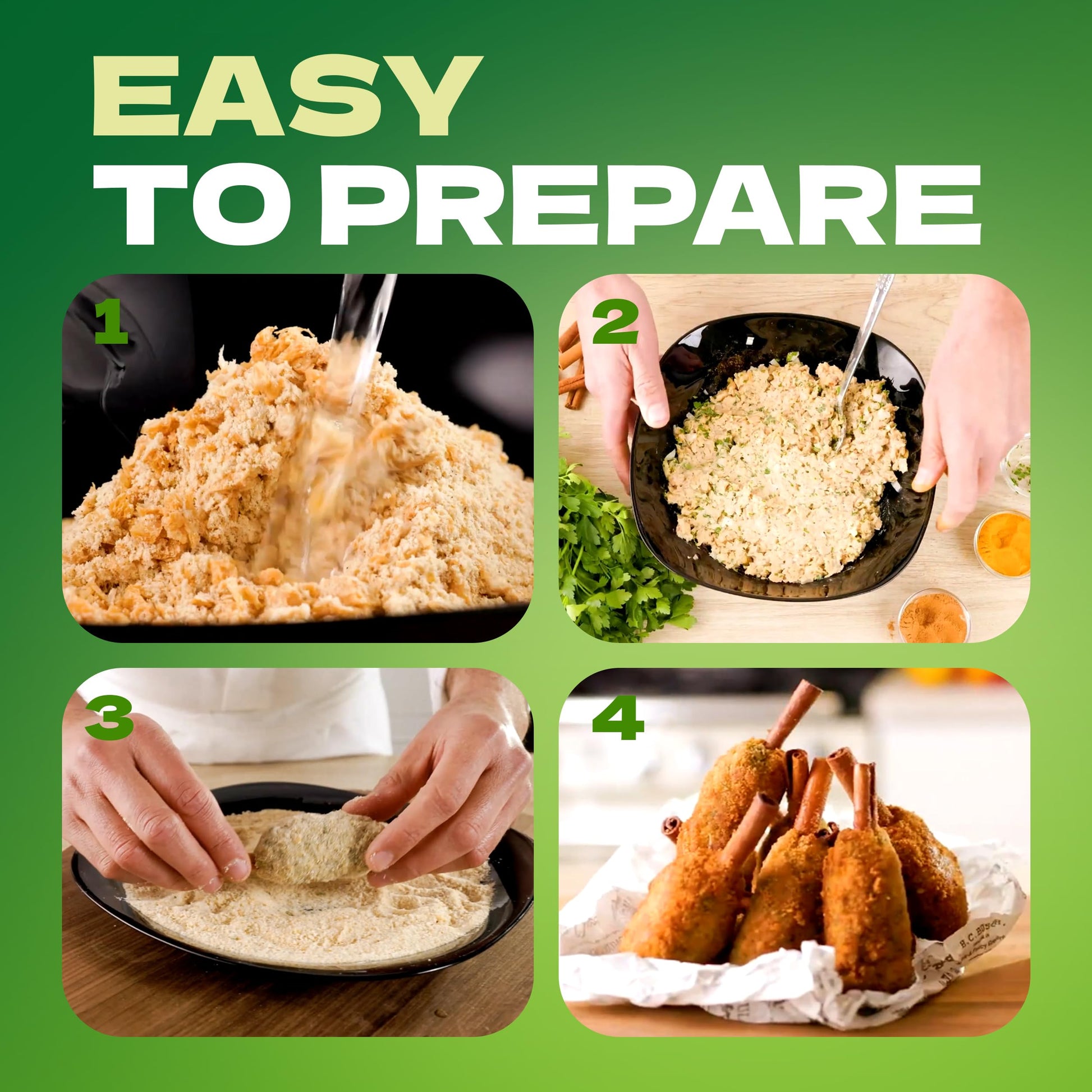 𝐐𝐮𝐢𝐜𝐤 & 𝐄𝐚𝐬𝐲 𝐭𝐨 𝐏𝐫𝐞𝐩𝐚𝐫𝐞 – Just add water and oil, chill for 10 minutes, and cook as burgers, nuggets, stir-fries, curries, or wraps. Perfect for busy families.